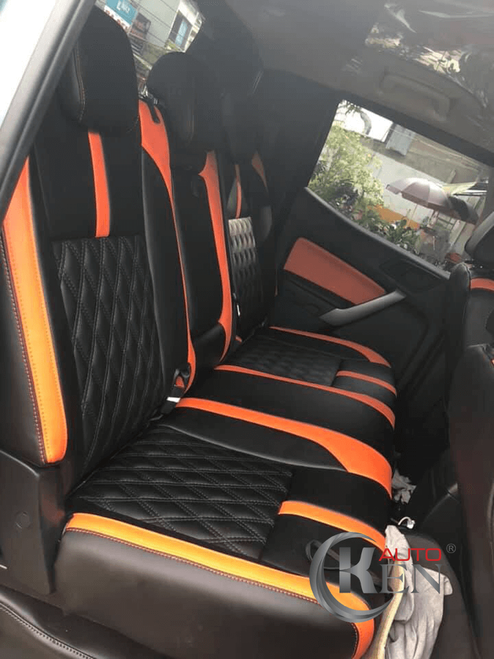 Mẫu áo bọc ghế ranger 2019 phối màu Đen - Cam kết hợp đan caro cực chất