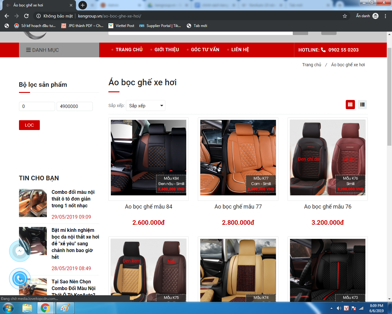 Sau khi đã tìm kiếm sản phẩm website sẽ hiện ra trang sản phẩm:
