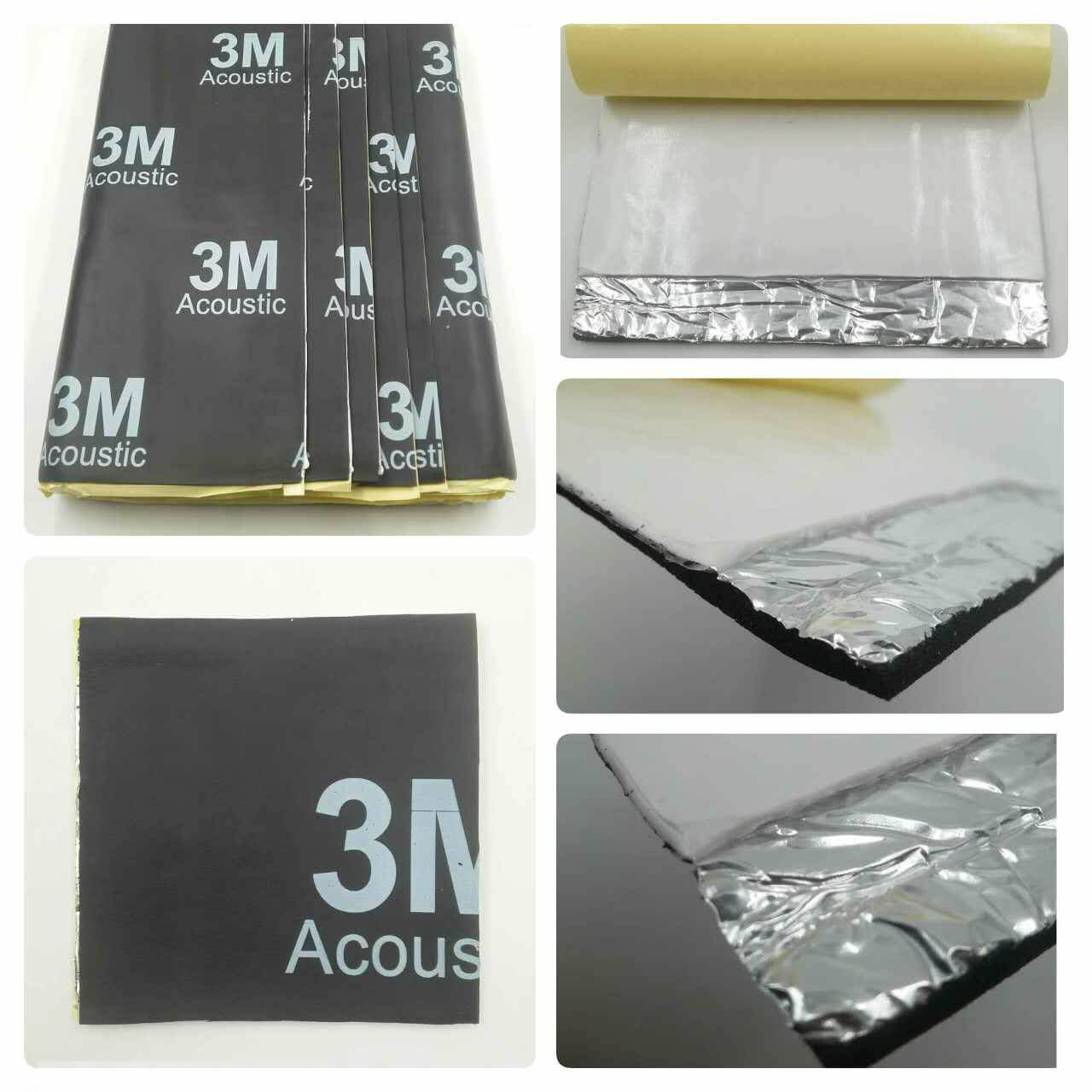 + Tấm cách âm 3M Acoustic có 3 lớp gồm: Lớp thứ nhất là cao su butyn màu trắng nguyên chất, không phải màu đen thường thấy, với tác dụng làm lớp dính, cản âm. Lớp thứ hai là lớp giấy bạc có tác dụng chặn âm. Lớp thứ ba là cao su dạng xốp, thường sử dụng trong các vật liệu cách âm, dùng để tiêu âm, chống ù.