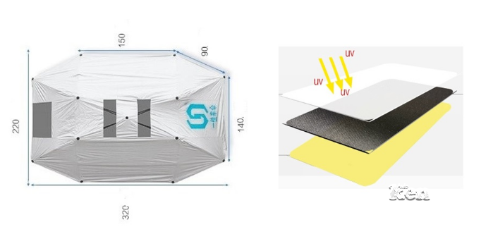 Tấm vải bạt che nắng: Được làm từ chất liệu được phủ lớp PU chống nước, chống thấm, khó rách, sức chịu nước lớn đến 800mmW/R nên có thể chống cả nắng và mưa chuyên nghiệp. Đặc biệt, chất liệu vải này có khả năng chống tia tử ngoại…Các lỗ thông hơi được thiết kế trên bề mặt vải bạt giúp không khí lưu thông dễ dàng, giúp giảm nhiệt cho xe mà không hề bị bí hơi.